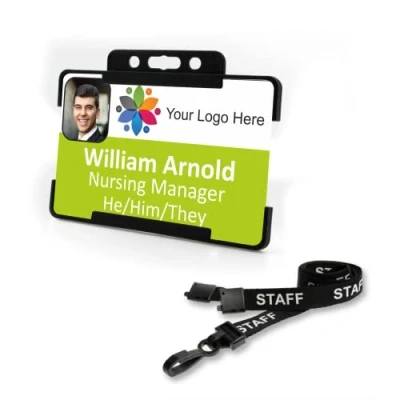 Badgemaster Multi Coloured Personalised Your Logo Business Professional Photo ID Black Rigid Card Holder and Staff Lanyard CR80 (Lime)
