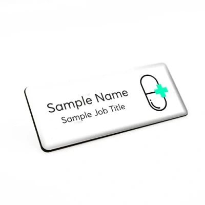 Badgemaster Pharmacist Medicine Health Shop Store Name Staff Badge 76 x 32mm White/Black