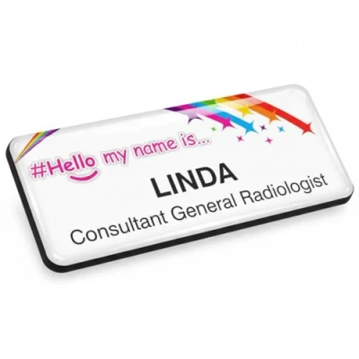 With a clear domed finish to a simple plain text name badge gives it that ultra-professional look. Not only will customers be able to identify your staff easily, but they’ll also be impressed by the high quality of their name badges. The clear polyurethane domed finish adds a layer of protection and professionalism, providing depth and a 3D look to your name badge. All our badges are finished to the highest quality, and as all our badge manufacturing is done in our purpose-built facility.