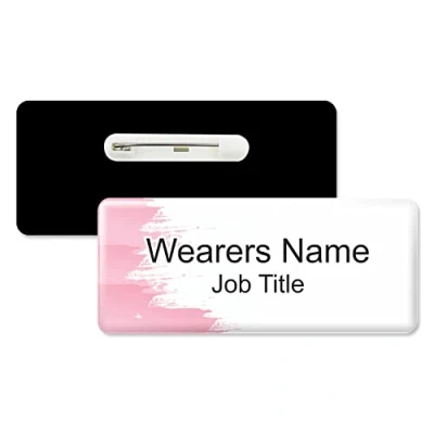 Badgemaster Pink Smudge Streak Personalised Premium Domed Bespoke Custom Staff Name Badge 76 x 32mm White Black
