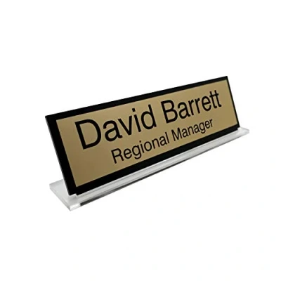 Badgemaster Premium Gold Custom Personalised Office Home Desk Name Plaque Acrylic Black