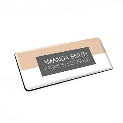 Badgemaster Various Designs Beauty Name Badge Beautician Yoga Make up Artist Consultant Expert MUA 76 x 32 White/Black Material (Beige Gray)