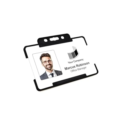Badgemaster Your Business Logo Horizontal Black Style Photo ID Card Including Lanyard and Holder CR80