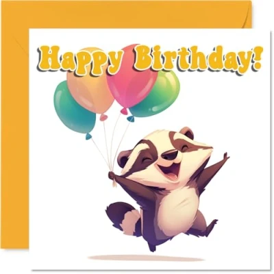 Badger Birthday Card Balloon Animals Happy Cards for Son Daughter Brother Sister Grandson Granddaughter Niece Nephew Cousin, 145mm Bday Greeting