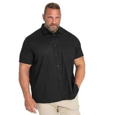 BadRhino Big & Tall Stretch Short Sleeve Shirt Men's Plus Size Curve Black