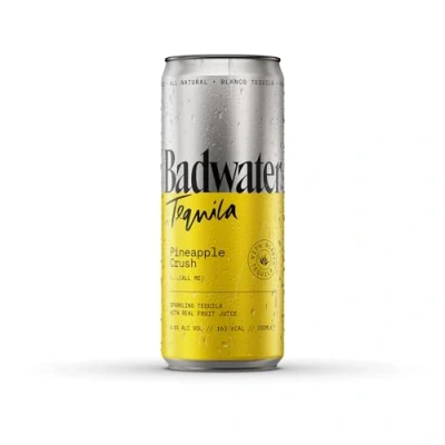 BadWater Tequila Pineapple Crush RTD, 12x 330ml, 4.5% ABV. Sparkling With Real Fruit Juice Blanco