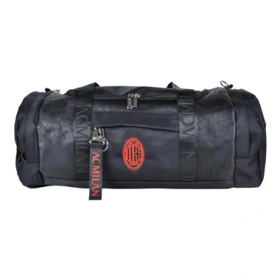 Bag 54 x 25 cm with 3D Embroidery and Pattern Print 143418 Milan, Black, Duffel Various Pockets Keychain