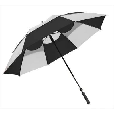 62" vented canopy renders wind harmless Proven not to invert in winds up to 70 mph Lightweight golf umbrella, Non-slip ergonomic cushioned grip handle Reinforced fiberglass shaft, ribs and hub Umbrella won't conduct electricity