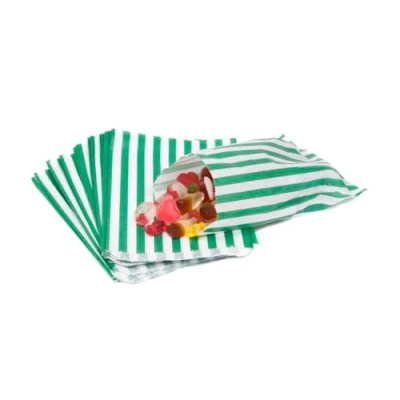 Bag It Plastics Candy Stripe Paper Sweet Bags Green 5" x 7" / 125x175mm Pack of 1000 Bags, Popcorn Wedding Favours, Pick and Mix & Cookie Premium UK Made Bags!