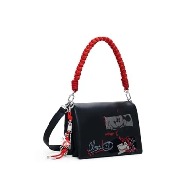 Crossbody style bag in faux leather fabric, with multiple interior compartments, interchangeable handles with Mickey Mouse print. Interior pocket with zipper Closure: flap, magnet, and zipper Multiple interior compartments Two interchangeable handles License: Disney Measurements: 25 x 6 x 16 cm SKU: 25WAXP192000U 100% POLYURETHANE