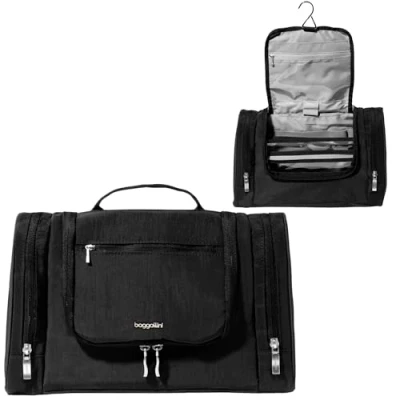 MULTIFUNCTIONAL ORGANIZATION: Find a place for all of your essentials with a convenient array of interior and exterior compartments. HANGING HOOK: Make the most of limited space while you’re traveling. MODULAR BAGGALLINI SYSTEM: At 13" w x 8.5" h x 3.5" d our handy Toiletry Kit effortlessly fits into most styles of Baggallini luggage. LIGHTWEIGHT AND WATER-RESISTANT: A lightweight design makes our Toiletry Kit perfect for travel, while water-resistant fabric ensures spot-cleaning is a breeze!