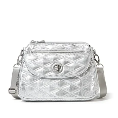 Baggallini Women's Calais Crossbody Bag, Silver Metallic Quilt, One Size