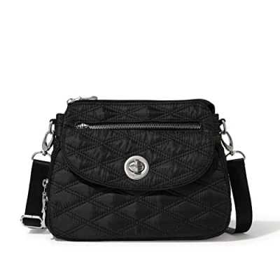 Baggallini Women's Calais Crossbody Bags 10x7 Lightweight Water Resistant Travel Purse, RFID Protection & Interior Organization, Black Quilt, One Size