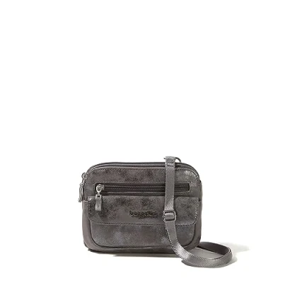 Baggallini Women's Modern Everywhere Mini Crossbody 7x0.8x5.5 Cross Body Small Purse Travel Bag Quick Access Pocket, Silver Metallic Vegan Suede, One Size