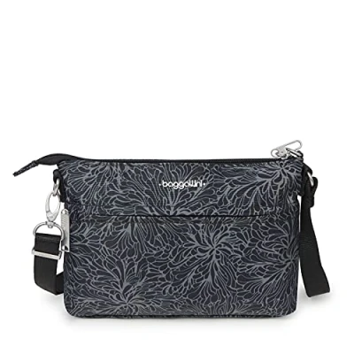 Baggallini Women's Securtex Anti Theft Memento Crossbody Bag Cross Body, Midnight Blossom Print, One Size