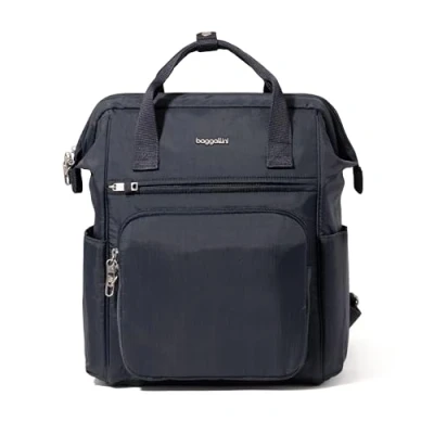 Baggallini Women's Securtex Anti theft Windsor Backpack for Travel, Work & Collage, RFID Locking Zipper, Up to 16" Laptop, French Navy, M, Travel