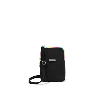 Baggallini Women's Take Two Rfid 5x7.25" Lightweight Small Phone Wallet Crossbody Nylon Travel Purse Mini Bag, Onyx Rainbow Pride, One Size