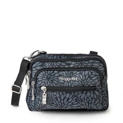 Baggallini Women's Triple Zip Bagg Convertible Cross Body, Pewter Floral, One Size