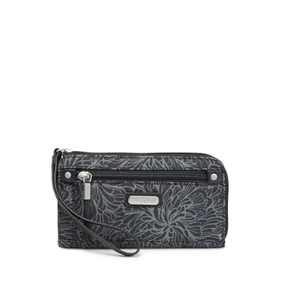 Baggallini Women's Zip Around Wallet, Midnight Blossom Print, Black
