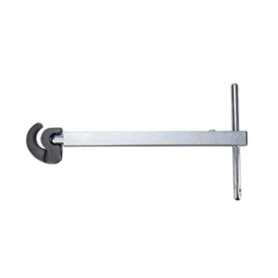 General description This telescopic basin wrench is designed to access hard-to-reach nuts and fittings in plumbing installations. Its adjustable design allows for easy handling and a precise grip on various sizes of nuts, making it ideal for plumbing repairs and maintenance. The wrench features a reversible jaw for accessing nuts on wash basins, bathtubs, sinks, or bidets. Technical specifications Length: 280 to 460 mm (telescopic) Width of the wrench: 150 mm Width of the shaft: 19 mm Width of the level: 9.7 mm Thickness of the shaft: 19 mm Distance between holes: 60 mm Opening diameter: 12 mm Weight: 800 g Nut Capacity: 10 to 32 mm Compatibility and accessories Suitable for nuts ranging from 10 to 32 mm Features a spring jaw and flexible head for better grip and maneuverability Installation No installation required; simply adjust the wrench to the desired size and position for use. Usage Adjust the wrench to fit the nut size Use the flexible head and spring jaw to securely grip the