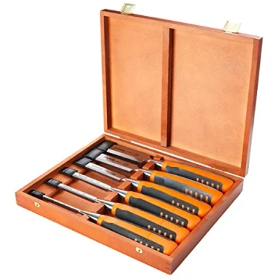 General description The Bahco 424P-S6-EUR is a professional-grade 6-piece chisel set designed for woodworkers, carpenters, and joiners who demand precision, durability, and ergonomic comfort. This set includes bevel-edged chisels in sizes 6, 10, 12, 18, 25, and 32 mm, catering to a wide range of woodworking tasks. Each chisel features a specially designed two-component handle that maximizes control and comfort, providing an excellent grip even during prolonged use. Technical specifications Chisel Sizes: 6 mm, 10 mm, 12 mm, 18 mm, 25 mm, 32 mm Blade Material: Hardened and tempered high-quality steel Blade Finish: Precision ground and varnished for increased rust resistance Handle: Two-component rubberised handle for enhanced grip and comfort Dimensions: 235 x 42 x 285 mm Weight: 1.385 kg Blade Length: 140 mm Handle Length: 125 mm Overall Length: 265 mm Protection Features: Splitproof Special Features: Splitproof Packaging: Supplied in a premium wooden box with tip protectors Usage