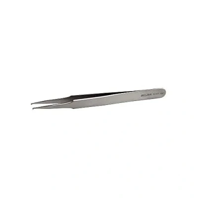 Tweezer with grooved tips for positioning and soldering 1 mm components at 45° angle Finish: Anti-glare micro-matt finish Material: Stainless steel, anti-magnetic, anti-acid
