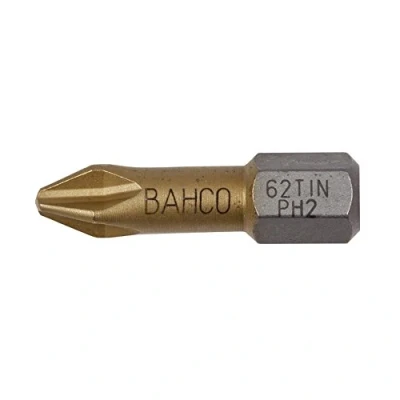 Bahco 62TIN/PH1 Ph1 Tin Bit for Phillips Head Screws, Gold/Grey, 25 mm, 10 Piece