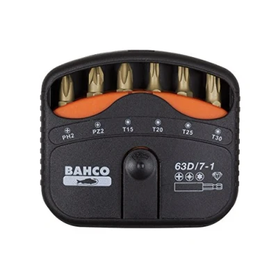 Bahco 63D/7 1 Diamond Bits Set for Phillips/Pozidriv/Torx Screws, Multi Colour, 7 Piece