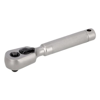 Metal Handle 60 teeth/6° action angle Quick-release function for easy and safe operation Comfortable non-slip knurled metal handle with hanging hole for easy storage Extra-short handle: ideal in highly dense zones Quick, easy direction change lever on wrench head High quality CrV steel Nickel and matte chrome finish Standards: ISO 3315/1174-2, DIN 3122/3120 Length: 120mm
