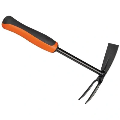 General description This Bahco small garden hoe features two different heads, making it a versatile tool for various gardening tasks. The two-prong fork is ideal for loosening and aerating soil, while the hoe blade is perfect for breaking up compacted ground and cutting weeds. Designed for durability, it has a fully hardened steel head with an epoxy powder coating that protects against rust, and a comfortable round polypropylene handle with a soft grip. Technical specifications Material: Fully hardened steel head with epoxy powder coating Handle: Round polypropylene with soft grip Length: 315 mm Weight: 231 g MPN: P267 EAN: 7311518299309 Compatibility and accessories Suitable for gardening tasks such as soil loosening, aeration, weed cutting, and breaking clogs Installation No installation required; ready to use out of the box Usage Use the two-prong fork to loosen soil and aerate Use the hoe blade for breaking up compacted soil and removing weeds Other information