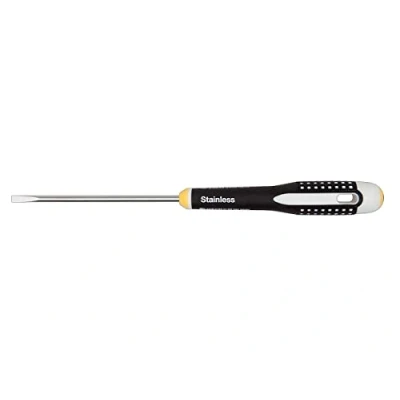 Screwdriver for slotted head screws With 3-component handle, for maximum user comfort and force transmission Blade material: Stainless steel, Manufacturer: Bahco
