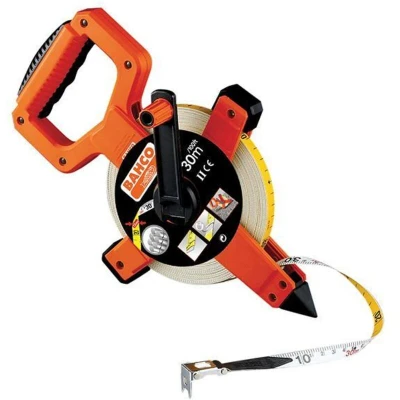 General description This Bahco 30m Nylon-Coated Tape Measure is a high-quality tool designed for both professional and DIY use. It features a durable, double nylon-coated band that ensures low wear and long-lasting performance. The tape is easy to read with clear, non-reflective markings, and it includes a two-component handle for comfortable handling. The device can be anchored into the ground, allowing for single-person operation, making it suitable for precise measurements in various applications. Technical specifications Band width: 16 mm Length: 30 meters (approximately 98 feet) Accuracy class: II (metric and imperial) Material: Reinforced plastic with glass fiber Weight: 830 grams Maximum measurement range: 30,000 mm Scale: Inch/mm Design: Flat plate slider housing Blade Width: 13 mm Blade Material: Fibreglass Pulling force capacity: Approximately 500 kg Compatibility and accessories Compatible with standard measuring applications Includes a sturdy handle for comfortable grip