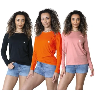 Bahob® 3 Pack Women's Classic Fit Long Sleeve Crewneck T Shirt, Multipacks Ladies Shirt Top S XXL (WFTS 111 A, Medium)