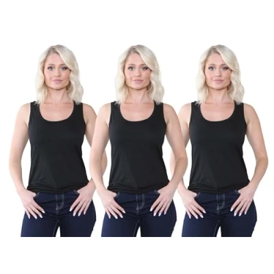 Bahob® 3 Pack Women's Vests Tank Tops for Women Supersoft Cotton Vest S 2XL (XL, Black)