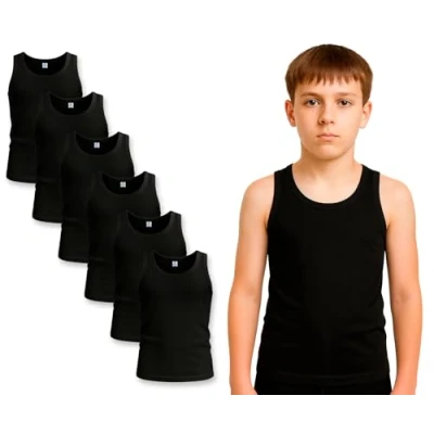 Bahob® 6 Pack Boy's Underwear Vests Soft Cotton Tank Tops Kids Sleeveless Undershirts 3 14 Years (Black, 9 10 Years)