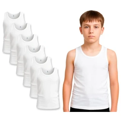 Bahob® 6 Pack Boy's Underwear Vests Soft Cotton Tank Tops Kids Sleeveless Undershirts 5 14 Years (White, 11 12 Years)