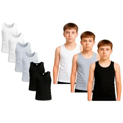 Bahob® 6 Pack Boy's Underwear Vests Soft Cotton Tank Tops Kids Sleeveless Undershirts 5 14 Years (White Black Grey, 9 10 Years)