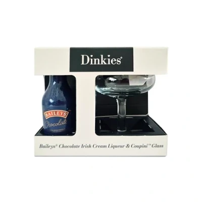 Baileys Chocolate Irish Cream Liqueur - This new liqueur is a delicious combination of Baileys Original Irish Cream with decadent Belgian Chocolate, mixed to enchant your senses with its velvety-smooth pour, lusciously rich texture and deliciously indulgent flavour of melted chocolate. Tasting Notes: The sweetest meeting of fine Irish Whiskey, Irish dairy cream, rich chocolate and vanilla flavours Contains: Milk, Cream Dinkies Coupini mini coupe glasses are perfect for treat-sized cocktails and cream liqueurs. They also make great serving dishes for little puddings and chocolates to wow your guests at parties!