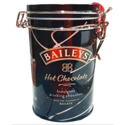 Baileys Infused Indulgent Drinking Hot Chocolate Mix Enjoy the Taste of Your Favourite Irish Cream Liqueur as a Hot Chocolate Drink. Perfect gift for Baileys lovers at Christmas, Valentine's Day, Mother's Day, Easter, Birthday's and Father's Day. Presented in a Tin Caddy to retain freshness. Give As A Gift Or Treat For yourself Great keepsake Baileys tin that Can Be Reused.