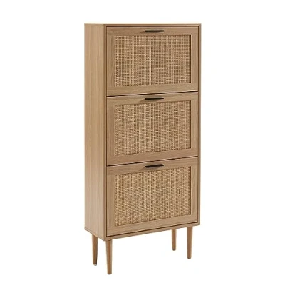 3 storage doors to keep your shoes out of sight A genuine cane frame Solid eucalyptus wood legs for a sturdy and stable base
