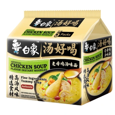 Baixiang Noodle Chicken Soup 5 Packs 555g features authentic Chinese instant noodles with a rich hen chicken broth, offering a convenience meal with flavorful soup using separate soup and powder packets for a traditional taste. Produced by Bai Xiang, this product delivers classic comfort and quality ingredients.