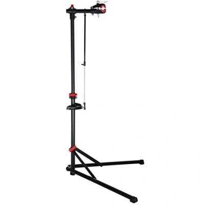 Bike repair stand, foldable and space-saving, suitable for all standard frames With adjustable clamp from 25 mm to 55 mm. The holder can be rotated 360 degrees Height adjustable telescopic pole Semi-circular tool tray and accessories