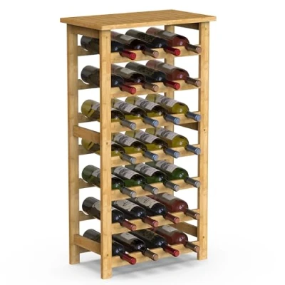 BAKAJI Bamboo Wood Wine Rack with 28 Compartments for Champagne Wine, Floor Bar, Living Room, Kitchen, Bistro, Restaurant, 47 x 29 93.5 cm (Natural)