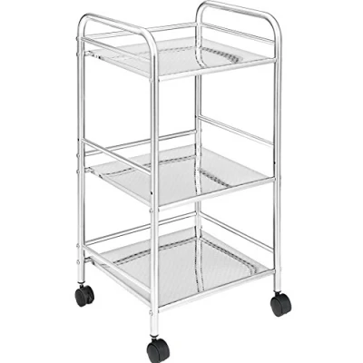 BAKAJI Chrome Steel Storage Trolley for Bathroom Kitchen Hairdresser or Beautician 4 Wheels Swivel 3 Shelves Dimensions 40 x 35 75 cm, Multifunction Levels (Steel)