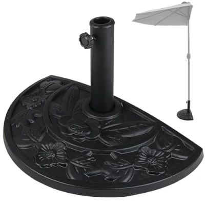 BAKAJI Half Moon Shape Garden Parasol Base, Umbrella Pole Support 38/48 mm, Stable Anti Flip System, Ideal for Patio, Balcony, Outdoor, Diameter 50 x 32 cm, Black, Contemporary