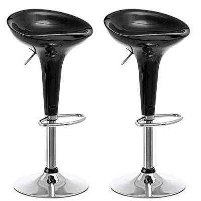 BAKAJI Set of 2 Bar Stools Kitchen Modern Design Chrome Steel Base ABS Seat Swivel Stool with Adjustable Height and Footrest (Black)