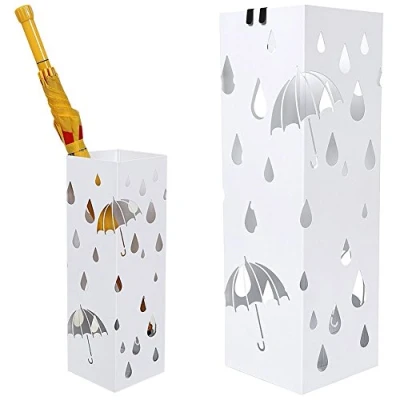 BAKAJI Umbrella Stand in Iron Design Square Shape White Colour Drip Tray and Hooks for Folding Umbrellas 49 x 15 cm