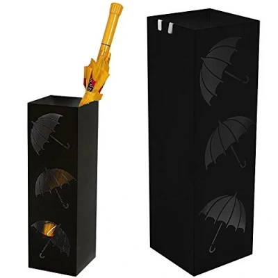 Beautiful design umbrella stand, minimal and modern decorated with 3 inlays in the shape of an umbrella, finds its place simply, in the living room, hallway, office, or where you want, perfectly adapting to any type of decor. Made of high quality metal in an elegant black colour with corrosion resistant finish and powder coating. This unique umbrella stand is equipped with a plastic drip tray, to collect water drops and protect the floor, also comes with internal hooks for hanging folding umbrellas and non-slip rubber pads. Dimensions: 49 x 15.5 cm International products have separate terms, are sold from abroad and may differ from local products, including fit, age ratings, and language of product, labeling or instructions., Weight: 5.51155655 Pounds, Manufacturer: BAKAJI