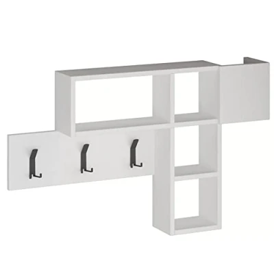 Add a unique touch to your home. With this beautiful wall mounted coat rack with shelves. Made entirely of MDF wood, which makes this coat rack truly unique and special. This beautiful hanger comes with 9 metal coat hooks divided along the hanger. But what makes this beautiful hanger truly unique is the functional cube shelves that allow you to place keys, accessories, wallets and furnishings. Modern and minimalist design that blends perfectly into any decor and creates a warm and cosy atmosphere..Dimensions: 99.5 x 61 x 15 cm