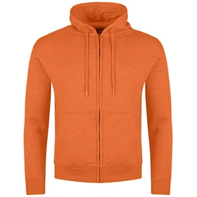 BAKARUDA Mens Full Zipped Long Sleeved Hoodies Cotton Rich Orange Small
